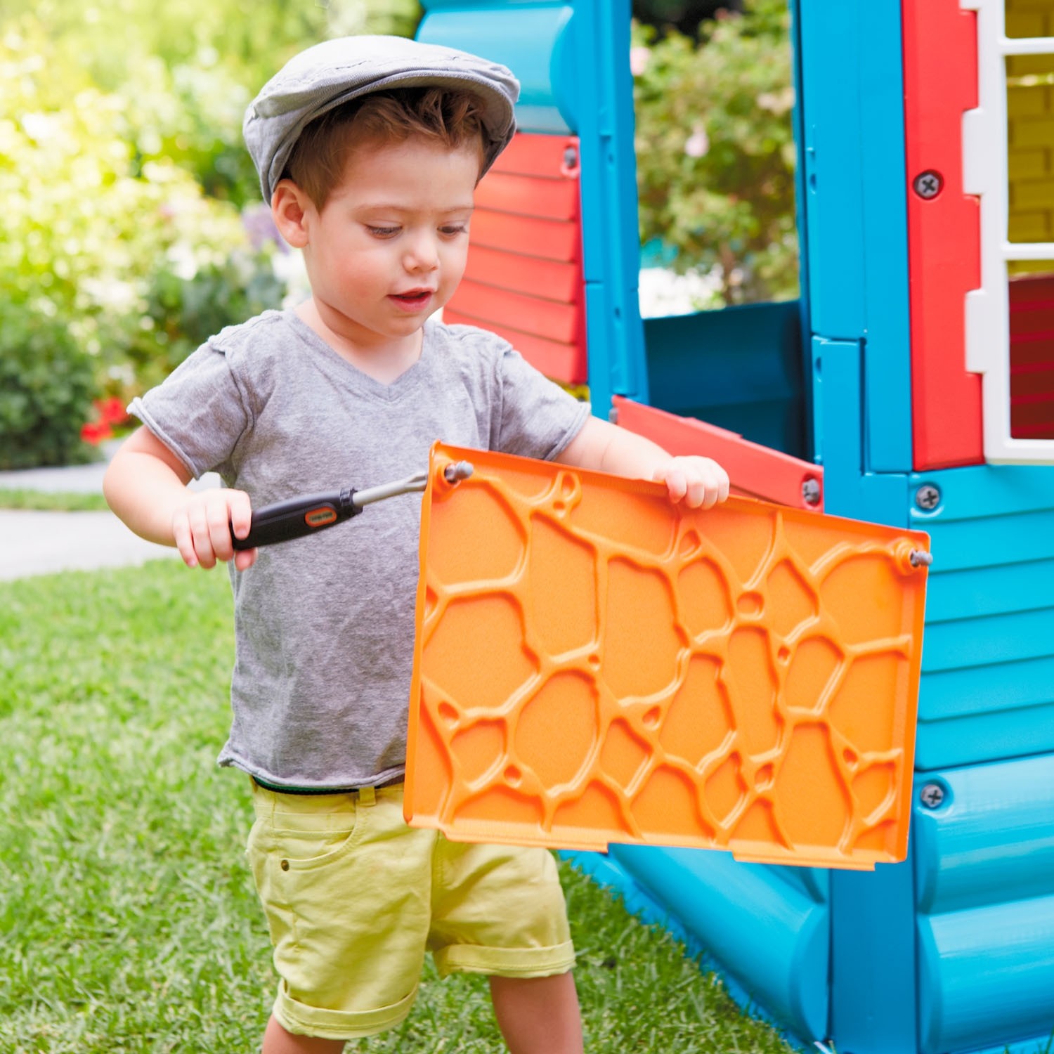¡Crea tu propia casa de juegos! Los niños pueden personalizar el aspecto de la casa con paneles intercambiables y herramientas fáciles de usar. ¡Pueden construirlo, desmontarlo y reconstruirlo para crear infinitas variaciones! Las casas de juegos promueven el juego físico y social.
