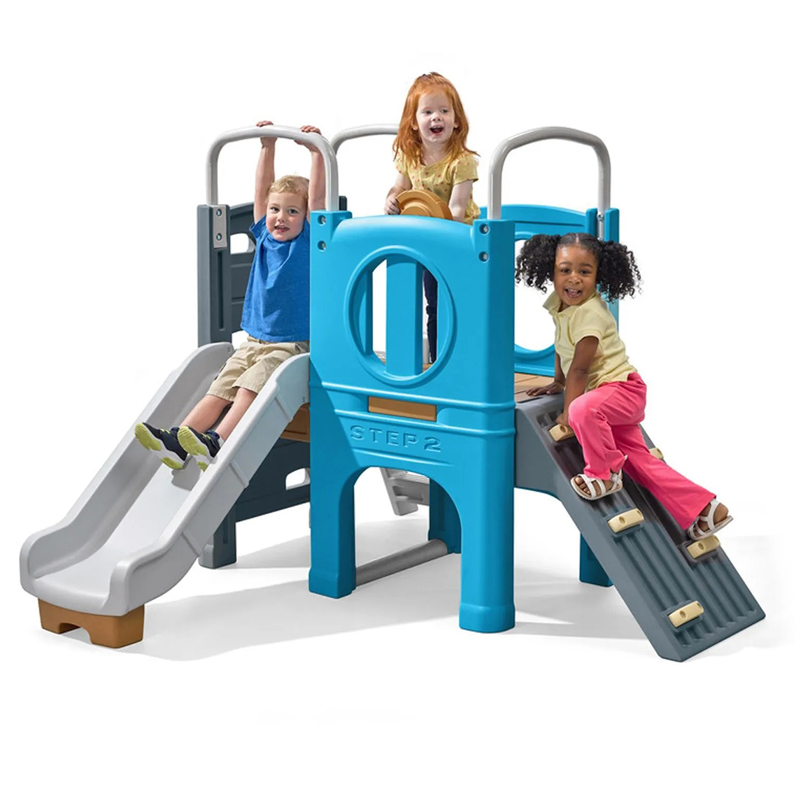 Los pequeños exploradores vivirán toneladas de aventuras con el juego Step2 Scout & Slide Climber para patios traseros. Pueden subir la escalera o uno de los dos muros de escalada para disfrutar de la casa club del nivel superior, donde pueden controlar el volante, mirar por dos ventanas o salir por el tobogán. El diseño de juego abierto del parque infantil anima a los más pequeños a desarrollar la imaginación, la creatividad, los juegos de roles y más. Los colores de dos tonos y los lados estilo patio de escuela añaden un diseño vintage al patio de juegos al aire libre. Barras de metal curvadas sostienen al escalador. No es solo un escalador, este robusto escalador para niños tiene muchas actividades para mantener a los pequeños interesados en contar cuentos, realizar actividad física y jugar socialmente.