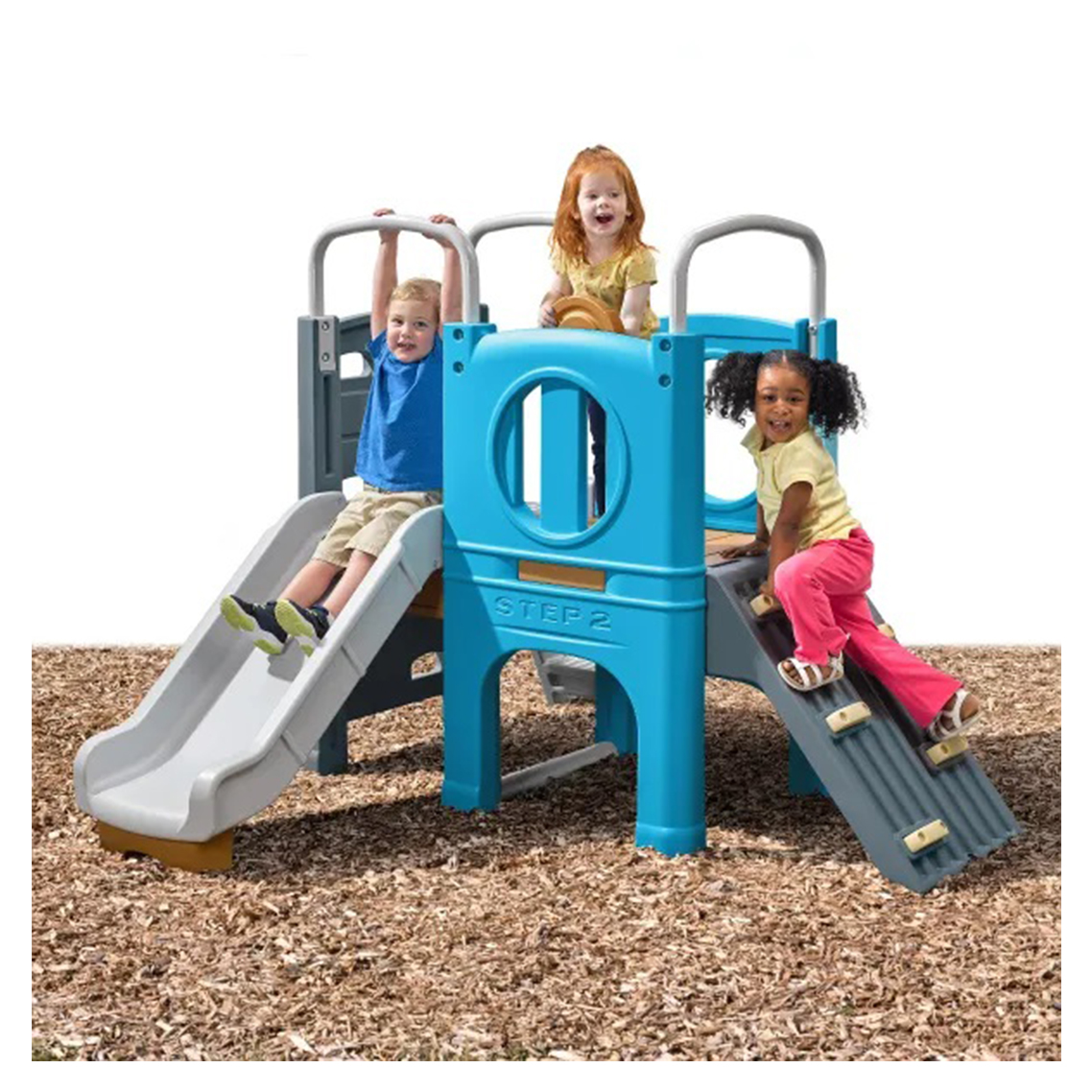 El escalador puede ser un avión, un barco pirata o cualquier otra cosa que los pequeños puedan imaginar. Fabricado en EE. UU. con piezas estadounidenses e importadas. Este juego está hecho para durar, con una construcción duradera de plástico de doble pared con colores moldeados que no se astillan, decoloran, oxidan ni pelan. Dimensiones ensamblado: 72.5″ x 70″ x 55.75″. En la caja: escalador con plataforma, tobogán, escalera, dos muros para escalar, volante y barras decorativas de metal. ¡El escalador para niños pequeños Scout & Slide de Step2 crea un paraíso de juego en tu patio trasero! Los más pequeños pueden subir la escalera o las paredes del parque infantil, deslizarse por el tobogán y vivir aventuras de juego imaginarios con el volante. El diseño de juego abierto anima a los pequeños a desarrollar la imaginación, la creatividad y aprender habilidades sociales. No es solo un escalador, este juego de patio trasero puede ser un avión, un barco pirata o cualquier otro escenario que los pequeños puedan imaginar. El diseño vintage y el color de dos tonos del escalador para niños quedan geniales en cualquier jardín. Características como las paredes para escalar, el tobogán al aire libre y el volante permiten practicar las habilidades motoras gruesas, la coordinación ojo-mano y el equilibrio durante el juego. A los padres les encantarán las barras de metal curvadas que añaden un acento brillante y sostienen a este escalador de juegos.