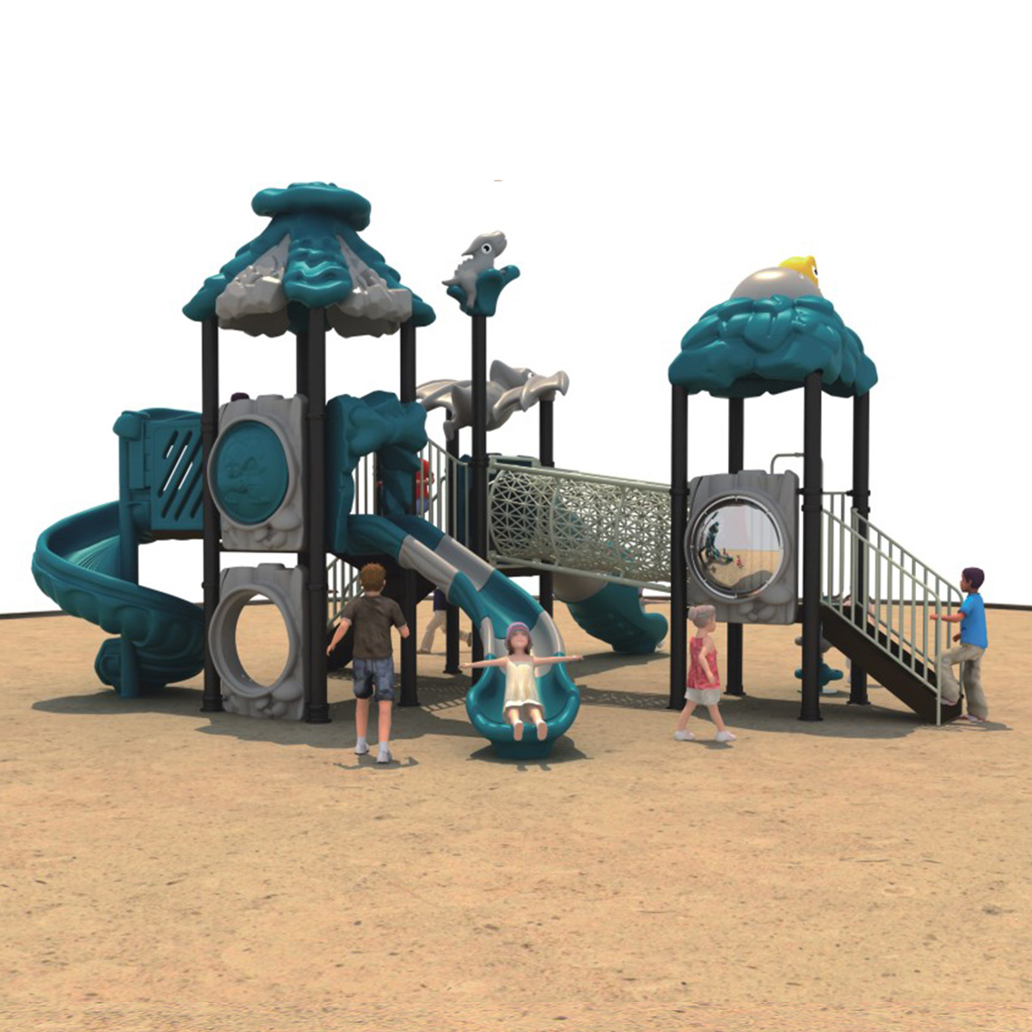 • Tanto los toboganes y figuras están fabricados en polipropileno de baja densidad resistentes a rayos UV y al alto tráfico.