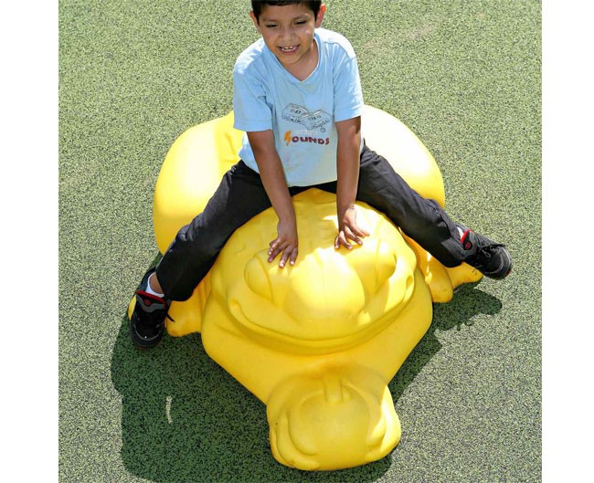 Los niños de 2 a 5 años amarán saltando en la Rana Froggy! Esta escultura de la rana escalada ha detallado características que hacen que se vea más realista.