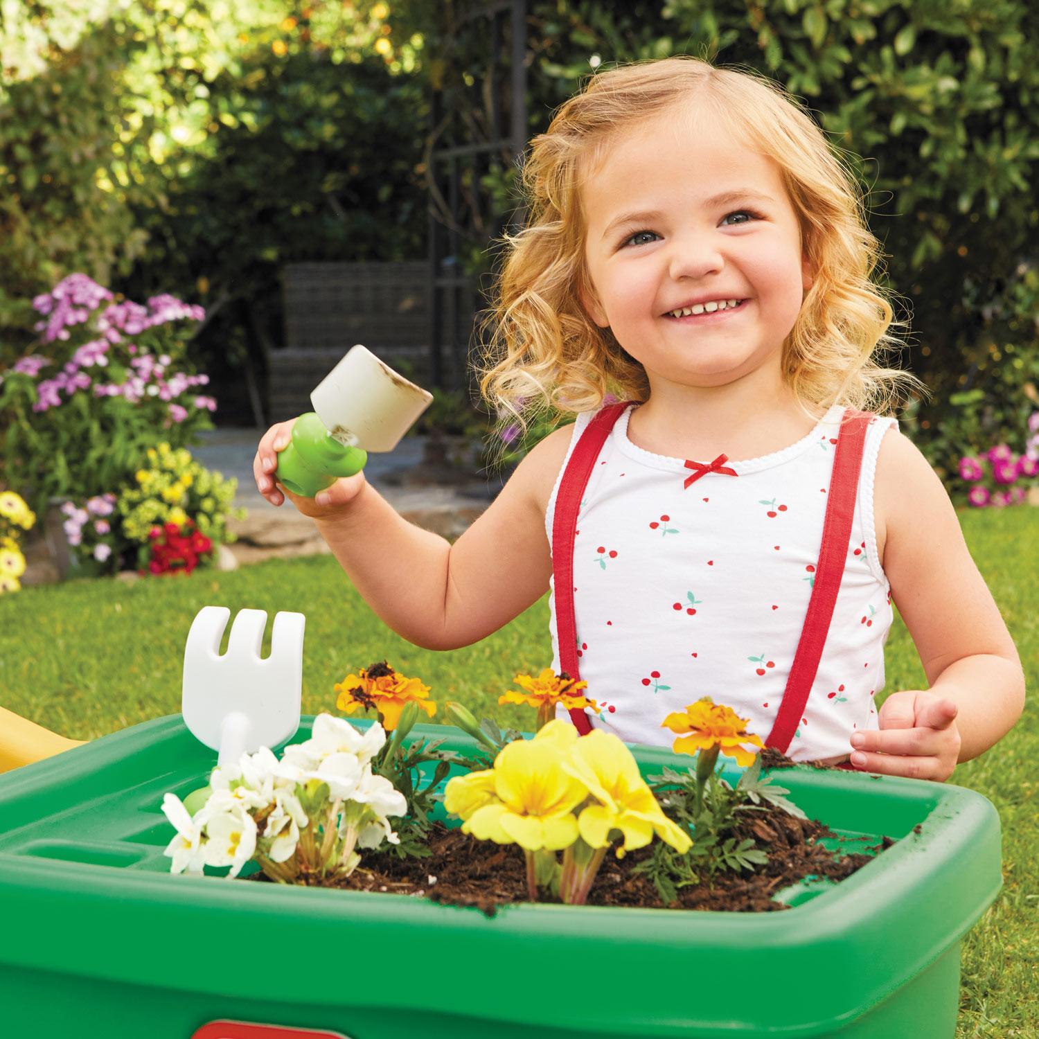 - Los niños pueden plantar su propio jardín (semillas no incluidas) y regarlo ellos mismos con el aspersor de agua real que funciona.