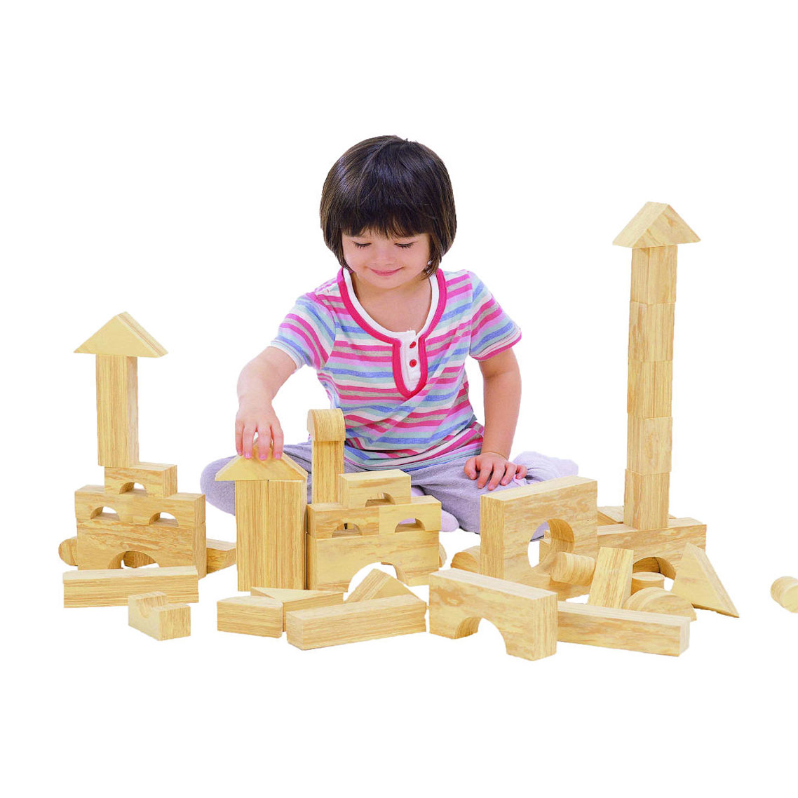 - Este conjunto comprende cubos, cilindros, pilares, triángulos y más.