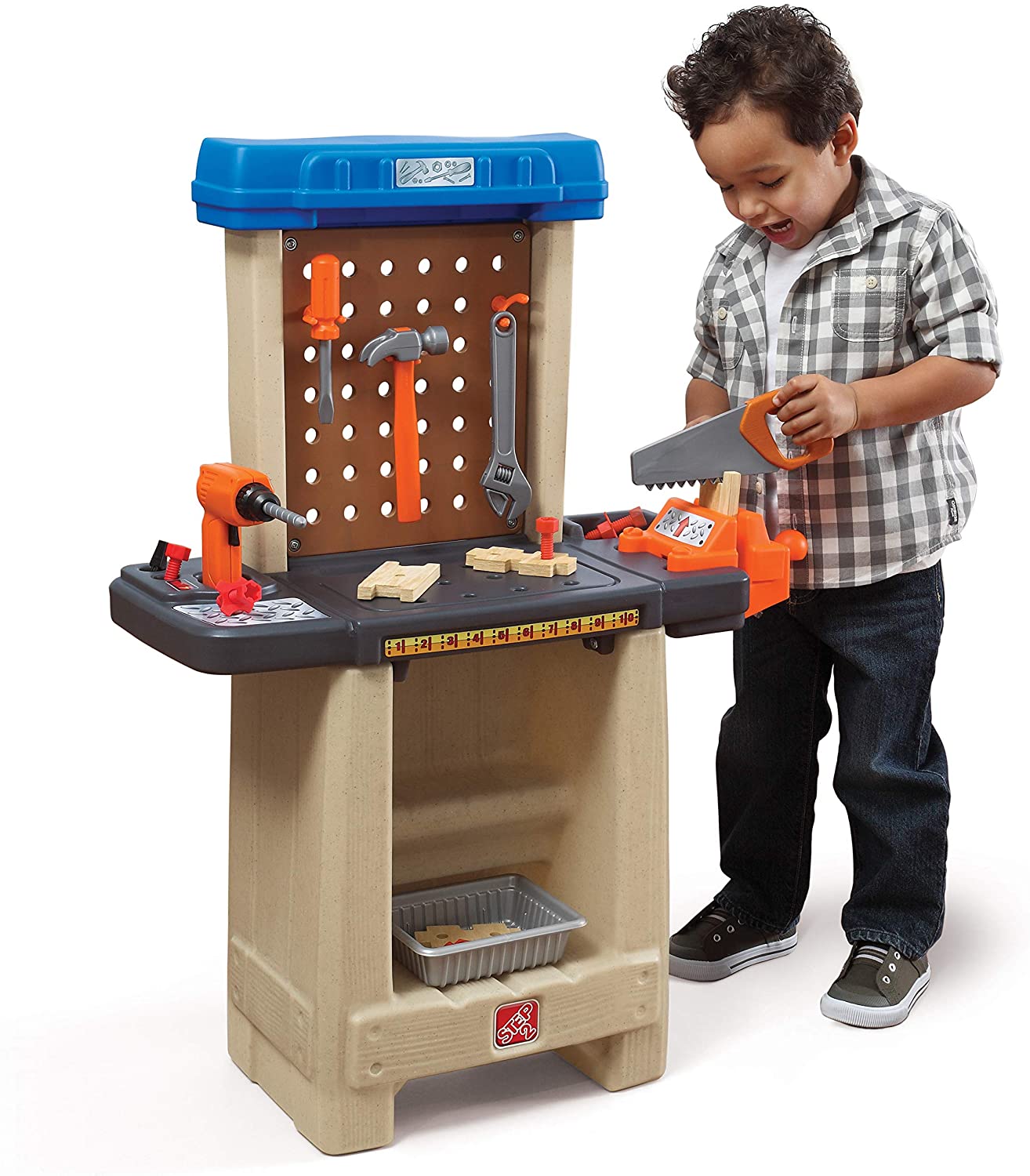 • Posee un tablero de mesa resistente, almacenamiento incorporado con estante y tablero, y características de taller de trabajo más realistas.