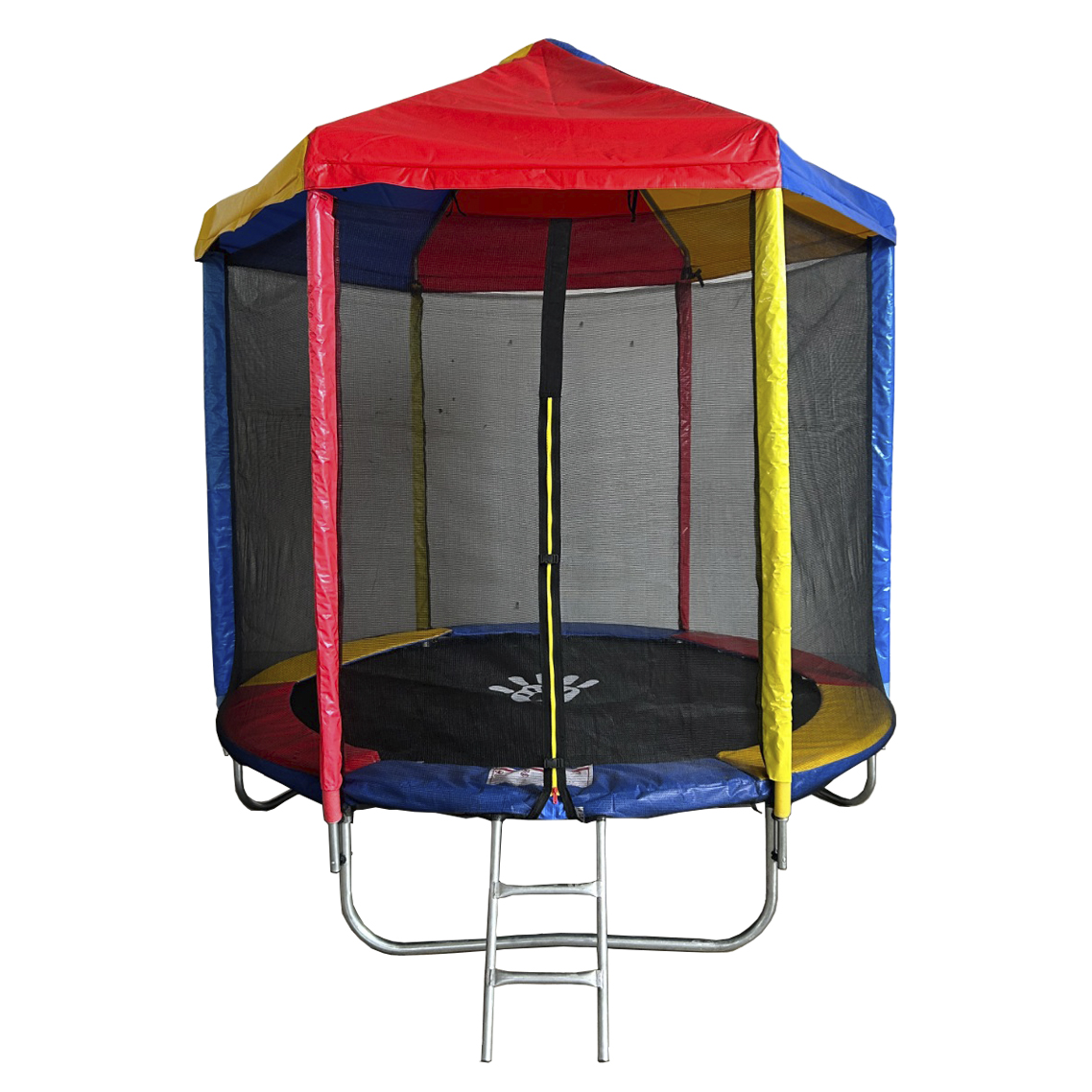 Tamaño del trampolín 2.40 de diámetro y 2,25 de alto y con el techo 2.70cm( el techo es opcional)